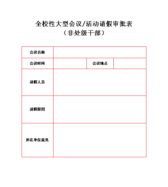 全校性大型会议/活动请假审批(非处级干部)OA流程图及表单